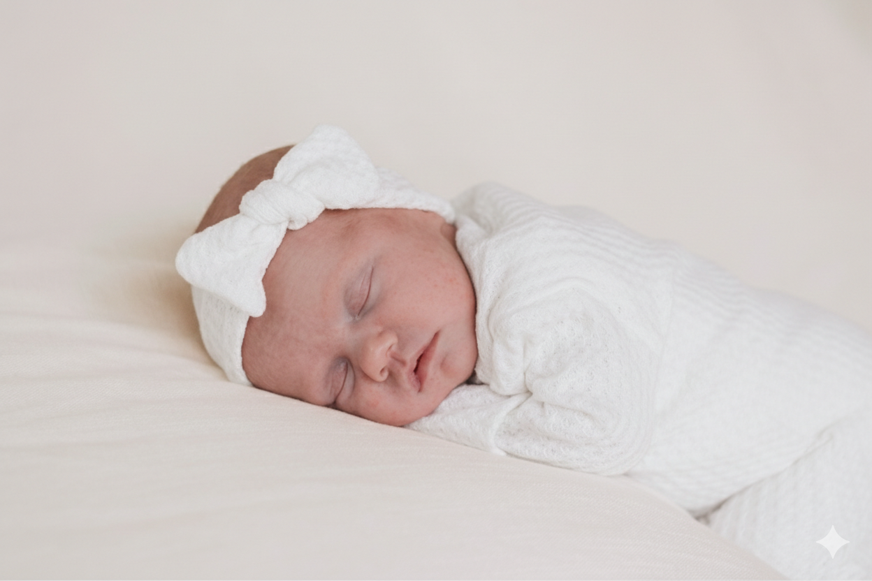 Knotted baby headband bow. Soft, stretchy, and comfortable with a gentle fit designed for everyday wear, newborn photos, and special moments.